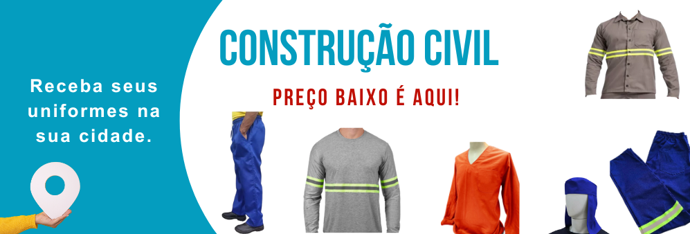 Dispomos de toda a linha de uniformes para construção civil, do fardamento operacional para obra aos uniformes sociais para engenheiros e técnicos, contamos com modelos atualizados e que fortalecem a sua marca. Atendendo os diversos setores das obras, oferecemos uniformes para construção civil com excelente acabamento e com faixas de sinalização refletivas para maior segurança dos seus colaboradores. Uniformes para construção civil você encontra aqui pelo menor preço, diminua já o custo da sua obra.